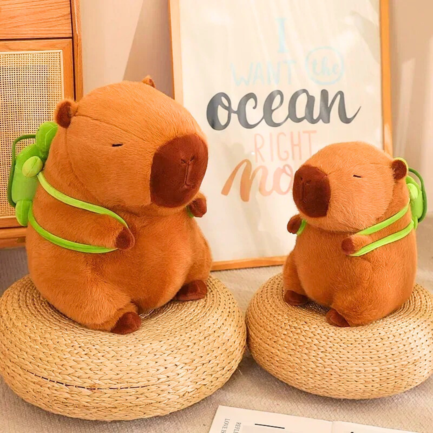 Answer 1: The sizes of capy plushes ranges from 23cm - 45cm. This is not including accessories which may increase height.